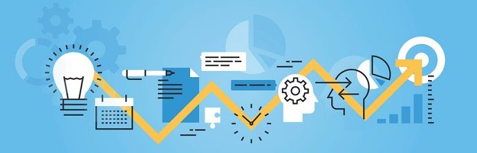Flat line banner of development process, from idea to realization